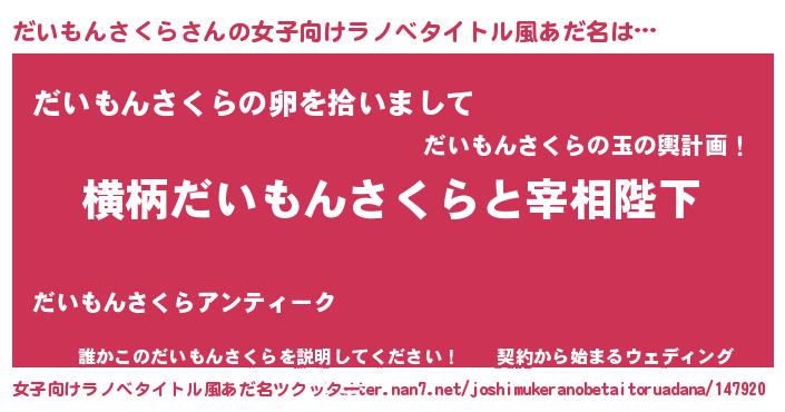| 男性向けラノベタイトル風あだ名 | 『だいもんさくらに滅ぼされるだけの簡単なお仕事です』 |