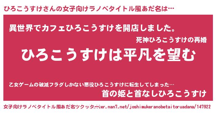 | 男性向けラノベタイトル風あだ名 | 『ダンジョンにひろこうすけを求めるのは間違っているだろうか』 |