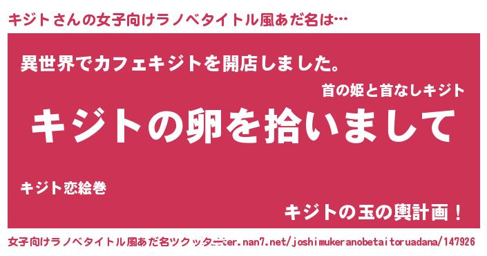 | ヒーロー風カッコイイあだ名 | 『幻影騎士キジ』『ネオキジト』 |