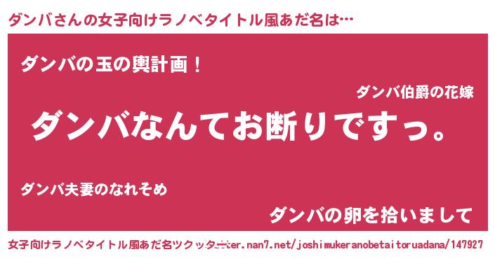 | 男性向けラノベタイトル風あだ名 | 『魔法科高校のダンバ』 |