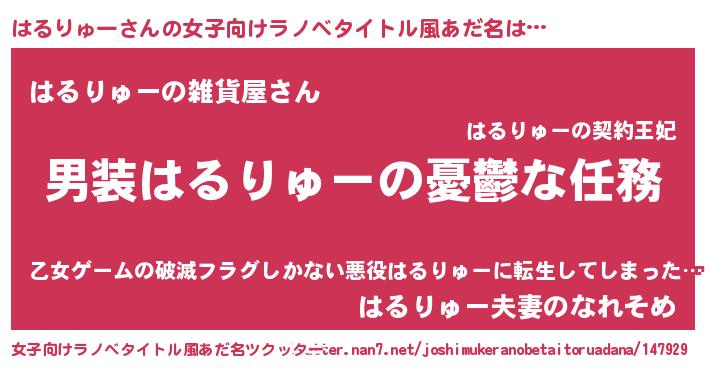 | 胡散臭い通販商品みたいなあだ名 | 『運命の人と巡り会える高級そうな壺…その名も「はるりゅー」』 |
