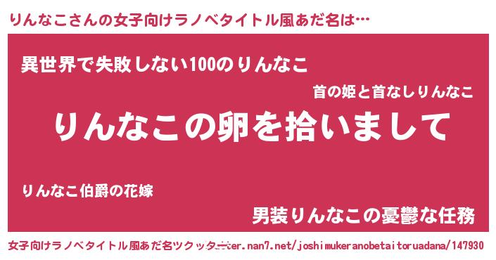 | 胡散臭い通販商品みたいなあだ名 | 『伝統あるサプリメント…その名も「りんなこ」』 |