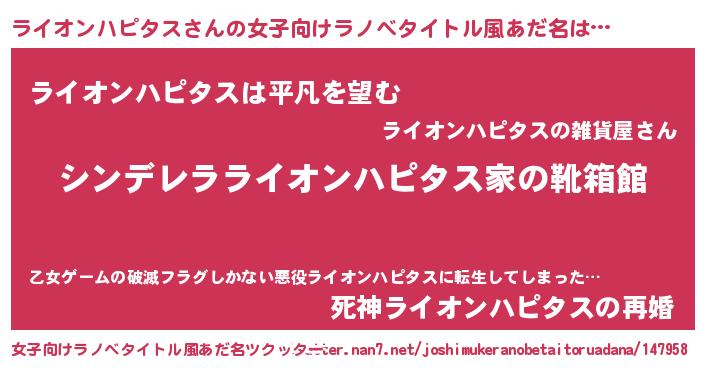 | 胡散臭い通販商品みたいなあだ名 | 『信頼と実績のペンダント…その名も「ライオンハピタス」』 |