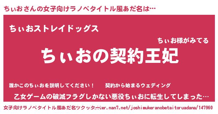 | 男性向けラノベタイトル風あだ名 | 『ちぃおという概念が存在しない退屈な世界 』 |