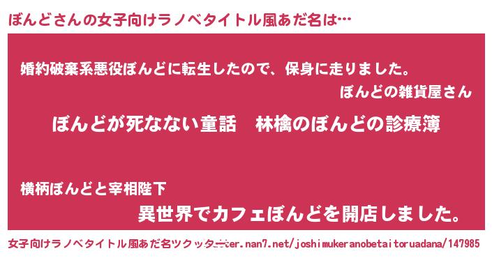 | 男性向けラノベタイトル風あだ名 | 『魔弾の王とぼんど』『ボンドスレイヤー』 |