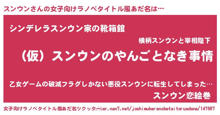 | 男性向けラノベタイトル風あだ名 | 『スンウンの憂鬱』『緋弾のスンウン』 |