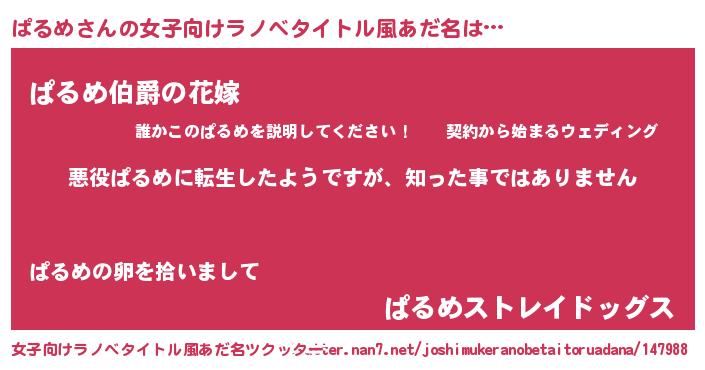 | 胡散臭い通販商品みたいなあだ名 | 『あなたにだけ特別に提供する100年もののヴィンテージワイン…その名も「ぱるめ」』 |
