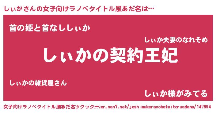 | 男性向けラノベタイトル風あだ名 | 『誰もが恐れるあのしぃかが、ぼくの専属メイドになるようです。』 |