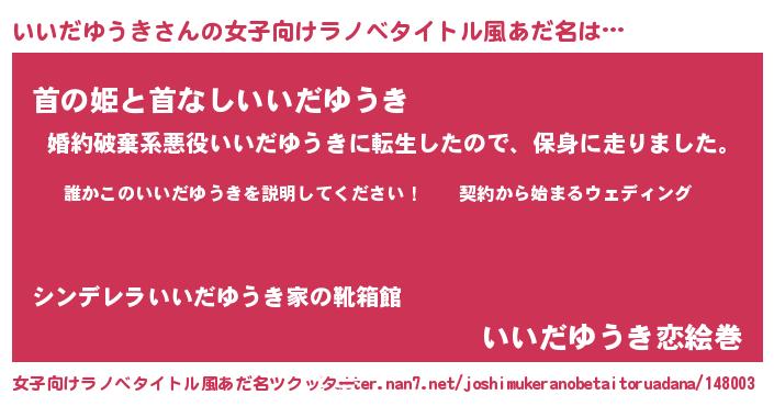 | 男性向けラノベタイトル風あだ名 | 『イイダユウキアートオンライン』 |