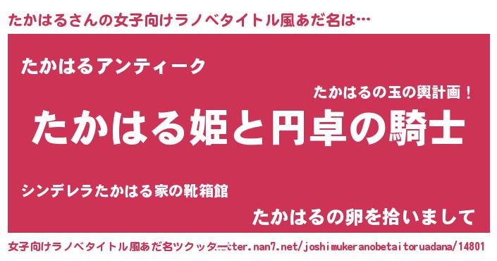 | 男性向けラノベタイトル風あだ名 | 『たかはるの憂鬱』『緋弾のタカハル』 |