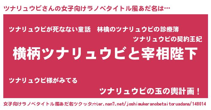 | 男性向けラノベタイトル風あだ名 | 『ツナリュウビに滅ぼされるだけの簡単なお仕事です』 |