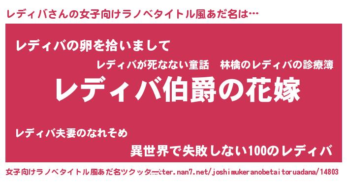| ヘコむあだ名 | 『なまこ酢』『レデ太郎』『レデもー』 |