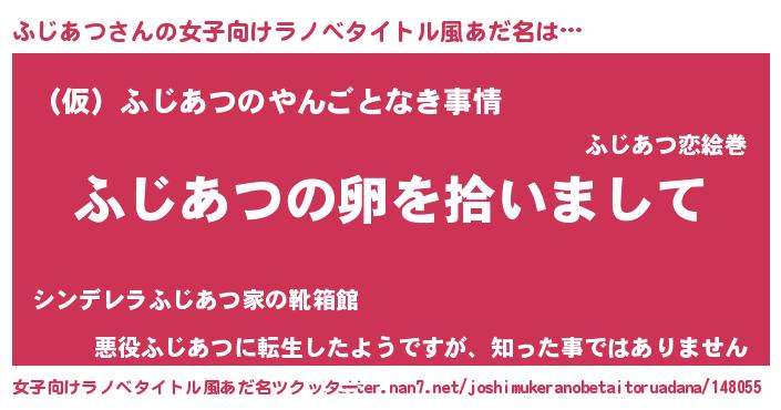 | 男性向けラノベタイトル風あだ名 | 『ダンジョンにふじあつを求めるのは間違っているだろうか』 |