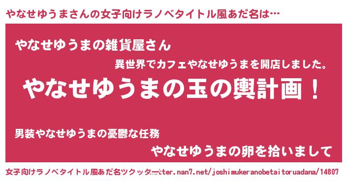 | 肩書あだ名 | 『やなせゆうま大将』『やなせゆうま教頭』 |