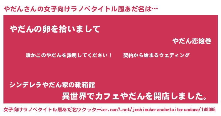 | 男性向けラノベタイトル風あだ名 | 『ヤダンアートオンライン』 |