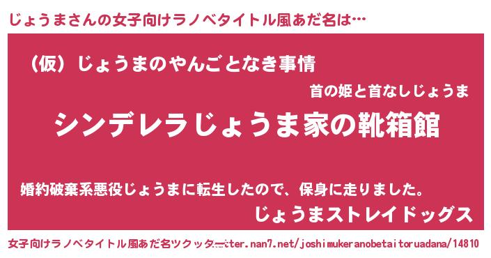 | 男性向けラノベタイトル風あだ名 | 『緋弾のジョウマ』『じょうまの憂鬱』 |