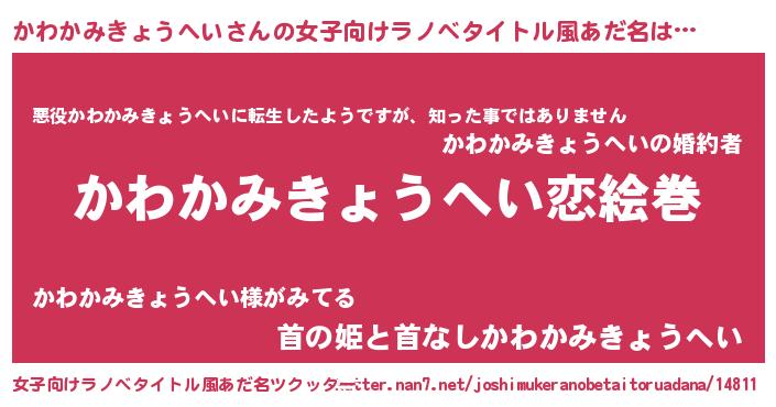 | ヒーロー風カッコイイあだ名 | 『愛の使者かわかみきょうへい』 |