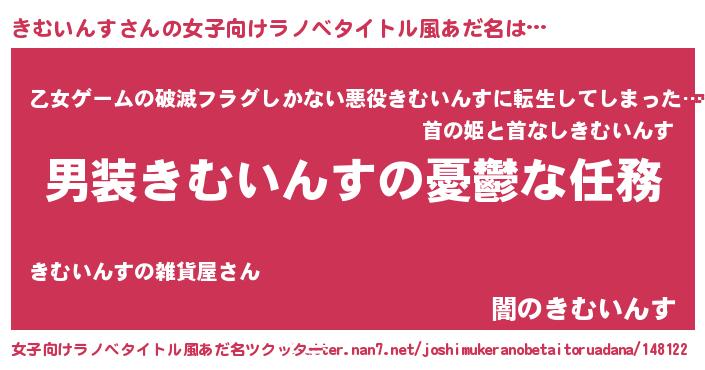 | 胡散臭い通販商品みたいなあだ名 | 『あなたにだけ特別に提供する限定10本のレアな日本酒…その名も「きむいんす」』 |