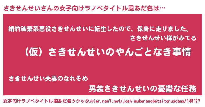 | 男性向けラノベタイトル風あだ名 | 『さきせんせいの憂鬱』 |