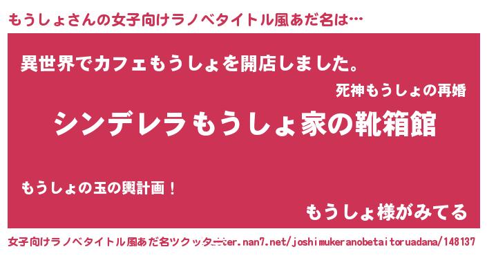 | 男性向けラノベタイトル風あだ名 | 『緋弾のモウショ』 |