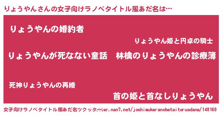 | 胡散臭い通販商品みたいなあだ名 | 『ハリウッド女優が絶賛した世界で10本だけ現存している希少なブランデー…その名も「りょうやん」』 |