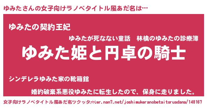 | 男性向けラノベタイトル風あだ名 | 『ユミタアートオンライン』 |