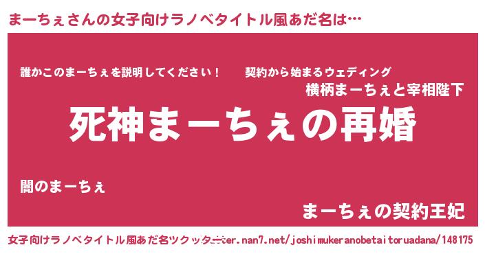 | 男性向けラノベタイトル風あだ名 | 『ノーゲーム・ノーマーチェ』 |