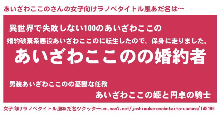 | 胡散臭い通販商品みたいなあだ名 | 『運命の人と巡り会える高級そうな絵画…その名も「あいざわここの」』 |
