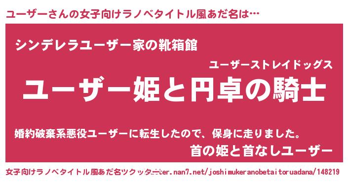 | 男性向けラノベタイトル風あだ名 | 『ユーザーアートオンライン』 |