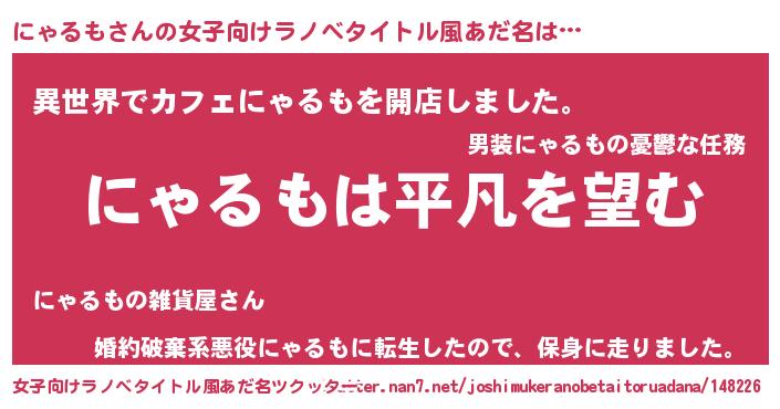 | 胡散臭い通販商品みたいなあだ名 | 『信頼と実績のネックレス…その名も「にゃるも」』 |