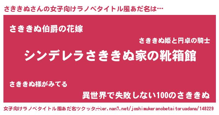 | 男性向けラノベタイトル風あだ名 | 『緋弾のサキキヌ』 |