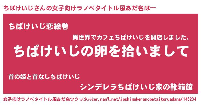 | 男性向けラノベタイトル風あだ名 | 『ちばけいじの嫁は女の子じゃないと思った?』 |