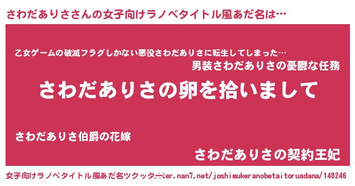 | ポケモン風あだ名 | 『ヒサワダアリサ』『サーワイ』 |