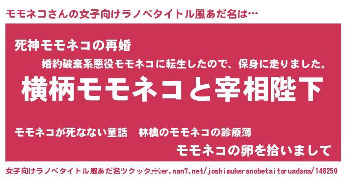 | ヘコむあだ名 | 『モモっ子』『モモネコ(苦笑)』 |