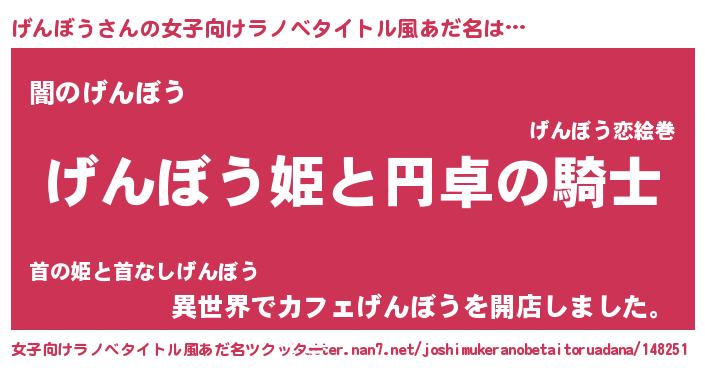 | 男性向けラノベタイトル風あだ名 | 『ゲンボウアートオンライン』 |