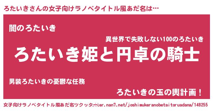 | 男性向けラノベタイトル風あだ名 | 『ロタイキアートオンライン』 |