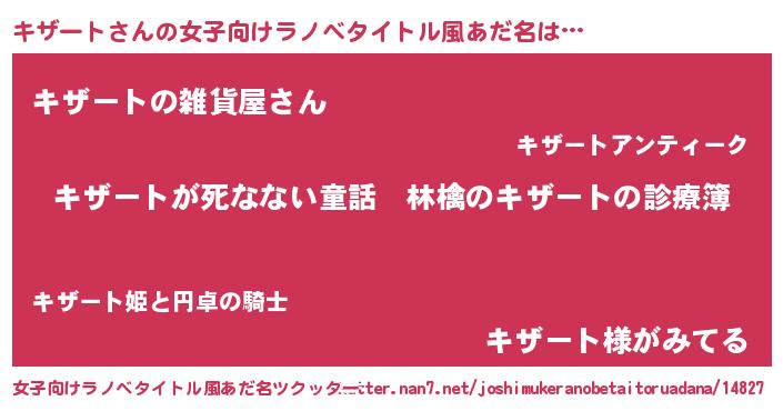| 男性向けラノベタイトル風あだ名 | 『魔弾の王とキザート』『キザートの憂鬱』 |