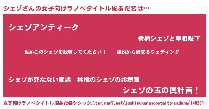 | 男性向けラノベタイトル風あだ名 | 『シェゾアートオンライン』 |