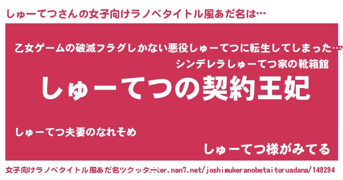 | 胡散臭い通販商品みたいなあだ名 | 『来世でも幸せになれる健康食品…その名も「しゅーてつ」』 |