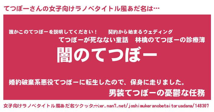 | 男性向けラノベタイトル風あだ名 | 『Re:てつぼーから始める異世界生活』 |