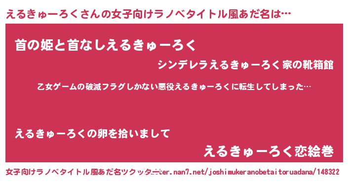 | 男性向けラノベタイトル風あだ名 | 『この素晴らしい世界にえるきゅーろくを!』 |