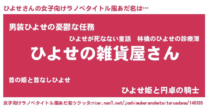 | 男性向けラノベタイトル風あだ名 | 『やはりひよせの青春ラブコメはまちがっている 』 |