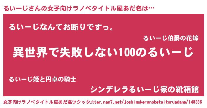 | 男性向けラノベタイトル風あだ名 | 『るいーじという概念が存在しない退屈な世界 』 |