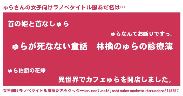 | 意味不明あだ名 | 『住所不定無職ゅら(68歳)』『永久保存ゅら』 |