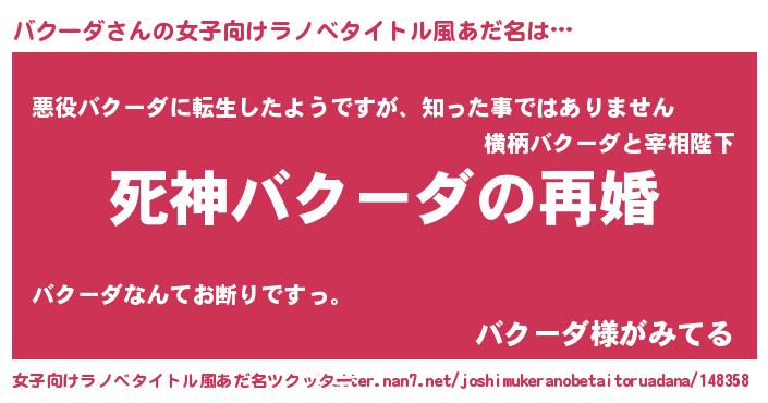 | 男性向けラノベタイトル風あだ名 | 『ノーゲーム・ノーバクーダ』 |