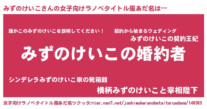 | 胡散臭い通販商品みたいなあだ名 | 『運命の人と巡り会える高級そうな壺…その名も「みずのけいこ」』 |
