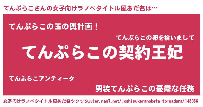 | 男性向けラノベタイトル風あだ名 | 『てんぷらこという概念が存在しない退屈な世界 』 |