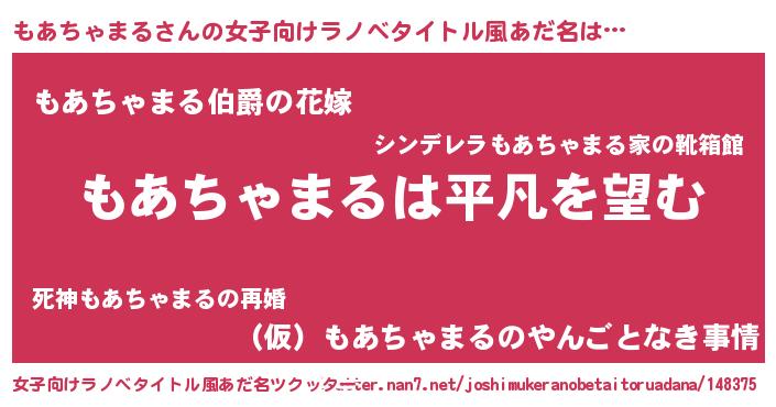 | 胡散臭い通販商品みたいなあだ名 | 『信頼と実績のサプリメント…その名も「もあちゃまる」』 |