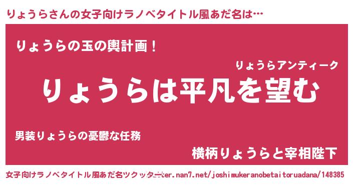 | ヒーロー風カッコイイあだ名 | 『暗黒騎士リョ』『サイバー戦士リョウラ』 |