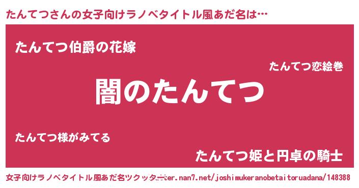 | 男性向けラノベタイトル風あだ名 | 『Re:たんてつから始める異世界生活』 |